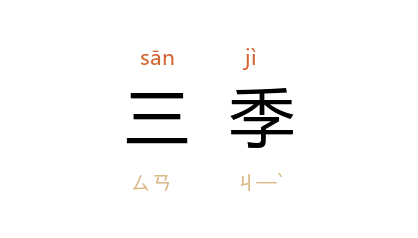 ⒊ 印度历法,一年分为春、夏、冬,或分为干季、暑季、雨季等三季。