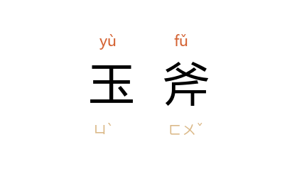 ⒈ 以玉饰柄的斧子。亦作为斧的美称。仙斧,神斧。喻媒人。人名。传说为仙人许翙的小字。