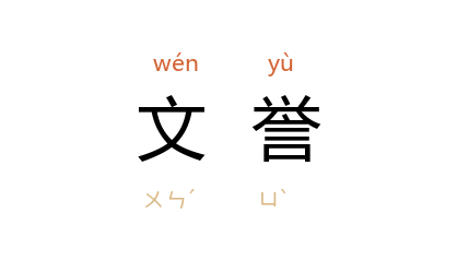引唐 皮日休 《鲁望悯承吉之孤为诗序邀予属和》:“唯我与君堪便戒,莫将文誉作生涯。”宋 葛胜仲 《虞美人·酬卫卿弟见赠》词:“怪来文誉满清时,柿叶书残,犹自日临池。”清 戴名世 《温濚家传》:“先生年方少,有文誉。”鲁迅 《中国小说史略》第八篇:“武后 时,有 深州 陆浑 人 张鷟 ……屡试皆甲科,大有文誉。”