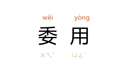 引《三国演义·第四九回》:「今日逢大敌,军师却不委用,此是何意?」《老残游记·第二回》:「明年如有委用之处,再来效劳。」
