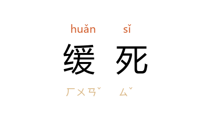引《易·中孚》:“君子以议狱缓死。”孔颖达 疏:“故君子以议其过失之狱,缓捨当死之刑也。”宋 苏轼 《获鬼章二十韵》:“缓死恩殊厚,求生尾屡摇。”