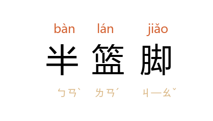 ⒈ 旧时妇女多裹小脚,缠得不大不小的脚,称为「半篮脚」。