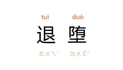 引《决定藏论》卷上:“若不更生,云何退堕?”唐 玄奘 《大唐西域记·僧伽罗国》:“商侣爱恋,情难堪忍,心疑去留,身皆退堕。”明 李贽 《与李惟清书》:“是以虽生彼,亦有退堕者;以佛又难见,世间俗念又易起,一起世间念即堕矣。”