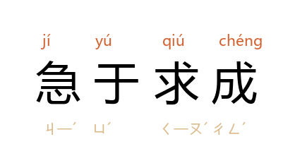 引范文澜 蔡美彪 等《中国通史》第三编第三章第二节:“王叔文 等在这种情况下执掌政权,思想上还以为大有可为,未免急于求成,见利忘害。”陆地 《牙科大夫》:“她怎样呢?还是那样急于求成,不甘寂寞吗?”