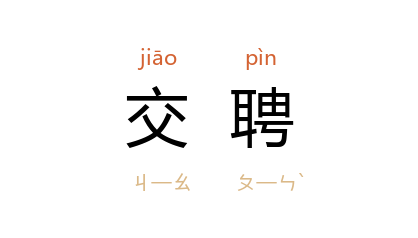引《北齐书·陆卬传》:“自 梁 魏 通和,岁有交聘。”唐 赵元一 《奉天录》卷二:“滉 亦三千人临 金山,与 少游 相应,以楼船金帛,交聘於 江 中。”《新五代史·杂传一·刘守光》:“有司迫 承勋 称臣, 承勋 不屈,以列国交聘礼入见。”郭沫若 《蒲剑集·中苏文化之交流》:“我们如能达到两国的艺术团体经常交聘的地步,丰富彼此的经验,增加彼此学习的机会,所表现在各方面的效果必然更加宏伟的。”