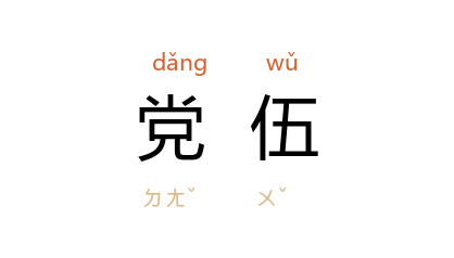 引宋 蔡絛 《铁围山丛谈》卷六:“国家将相之任,文武之道,咸归此二人,因公立党伍,甚於水火。”《三国演义》第二十回:“近日 操 贼弄权,欺压君父,结连党伍,败坏朝纲。”