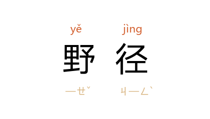 引南朝 梁 沉约 《宿东园》诗:“野径既盘紆,荒阡亦交互。”宋 方岳 《梦寻梅》诗:“野逕深藏隐者家,岸沙分路带溪斜。”清 郝明龙 《乙未》诗:“乘便小舠看钓去,偶来野径得花归。”