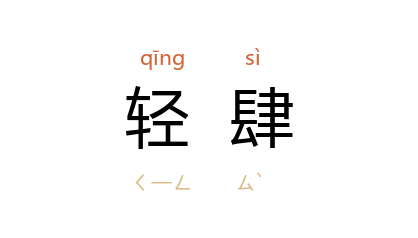 引三国 魏 嵇康 《与山巨源绝交书》:“刚肠疾恶,轻肆直言;遇事便发,此甚不可二也。”金 王若虚 《太一三代度师萧公墓表》:“志寧 资虽明敏,而颇轻肆,非主教之才,不如 王某 纯粹廉洁。”清 谭嗣同 《石菊影庐笔识·思篇五四》:“然惟极思沉鬱,乃发轻肆之谈;遗物外己,终见悱惻之致。”