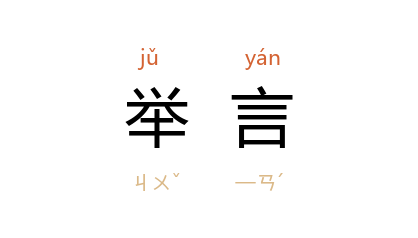 引《管子·大匡》:「管仲进而举言,上而见之于君。」《乐府诗集·卷七三·杂曲歌辞十三·古辞·焦仲卿妻》:「举言谓新妇,哽咽不能语。」