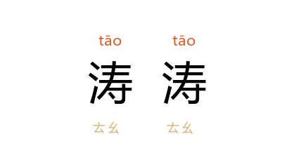 引金 董解元 《西厢记诸宫调》卷一:“涛涛金汁出天涯,滚滚银波通海洼。”杨沫 《乡思的朝与暮》:“屈原 --我生平最景仰的伟大诗人,他忽然拂动长袖,披散着头发,神态庄严激愤地屹立在涛涛江畔。”