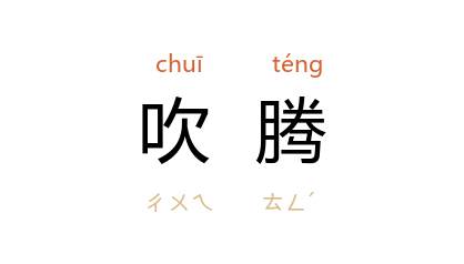 引老舍 《赵子曰》第十四:“先别吹腾……那顶纱帽不可高眼!”老舍 《断魂枪》:“他们到处为 沙老师 吹腾,一来是愿意使人知道他们的武艺有真传授,受过高人的指教;二来是为激动 沙老师。”