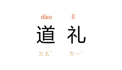 引宋 无名氏 《张协状元》戏文第十一出:“亚婆,我有道礼。你只説道:改日娘自讨与你做老婆,它便担去。”元 狄君厚 《介子推》第二折:“既为臣子,怎敢将主所杀?我将这行仁慈有道礼忒忠孝的 申生,我委实下不得手。”