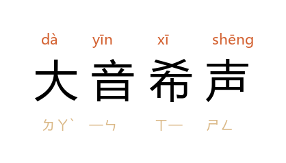 引《老子·第四一章》:「大器晚成,大音希声,大象无形。」