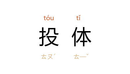 引唐 李华 《东都圣禅寺无畏三藏碑》:“僧有 达摩鞠多,掌定门之祕钥,佩 如来 之密印……和尚投体两足,奉为本师。”唐 梁肃 《药师琉璃光如来画像赞》序:“自外入者,或疑辞怖,投体膜拜,而不知其粉绘也。”
