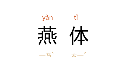 ⒈ 汉成帝 皇后 赵飞燕 体轻善舞,后因以“燕体”形容物之轻柔或女子体态轻盈。