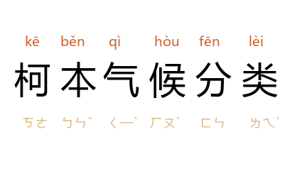 ⒈ 根据气温和降水,参照自然植被分布设计的气候分类。1900年由德国气候学家柯本制订,经多次修正,沿用至今。该气候分类将全球气候分为湿润与干燥两大类,总共11型:af热带雨林气候;2.aw热带草原气候;3.bs草原气候;4.bw沙漠气候;5.cf温暖常湿气候;6.cw温暖冬干气候;7.cs温暖夏干气候;8.df寒冷常湿气候;9.dw寒冷冬干气候;10.et苔原气候;1ef冻原气候。