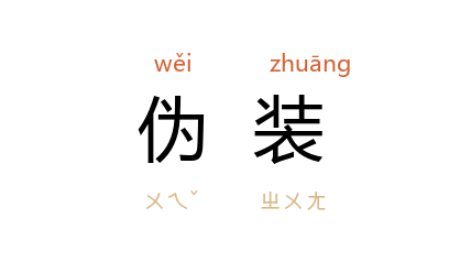 ⒋ 泛指各种隐蔽自己的身分、面目以达到某种目的的行为或手段。