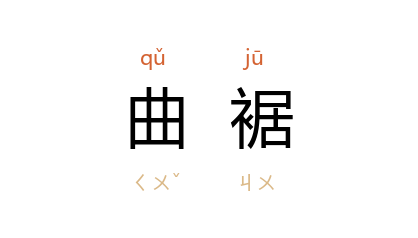 ⒈ 古时将上衣下裳连成一体,合成一件衣服,称为「深衣」。由深衣的前襟接出一段,穿时绕至背后的部分,即称为「曲裾」。