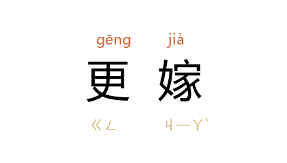 引《韩非子·外储说左上》:“﹝ 桓公 ﹞乃且復召之,因復更嫁之。”《汉书·苏武传》:“子卿 妇年少,闻已更嫁矣。”晋 干宝 《搜神记》卷十一:“遣归家,更嫁为 华仲 妻。”清 江藩 《汉学师承记·钱大昕》:“去而更嫁,不谓之失节。”