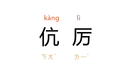 引《史记·汲郑列传》:“黯 时与 汤 论议, 汤 辩常在文深小苛, 黯 伉厉守高不能屈。”《三国志·魏志·韩崔高孙王传评》:“孙礼 刚断伉厉。”明 归有光 《士立朝以正直忠厚为本》:“或者曰:‘正直近于伉厉,容有激天下之变。’是固有之。然刓方为圆以规世好,君子终不避伉厉之讥而出于此也。”