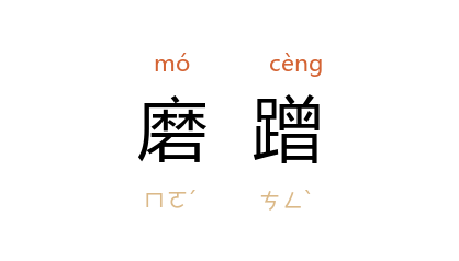 例如:「他做事情喜欢磨蹭,不够干脆。」