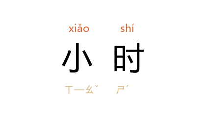 ⒉ 时间单位。我国古代每天分十二时,以十二地支依次标记。至近代每时又分为二,适与国外每天分二十四点钟相合,故沿称现行二十四分法之时为小时。