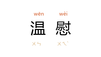 引《二刻拍案惊奇》卷五:“那时留了 真珠姬,好言温慰得熟分。”柔石 《二月》二二:“一种温慰与凄凉紧缠着他心上。”冰心 《寄小读者》六:“愿上帝无私照临的爱光,永远包围着我们,温慰着我们。”