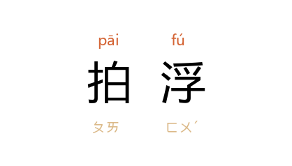 ⒈ 浮游;游泳。南朝宋刘义庆《世说新语·任诞》:“毕茂世云:'一手持蟹螯,一手持酒杯,拍浮酒池中,便足了一生。'”后因以“拍浮”为诗酒娱情之典。