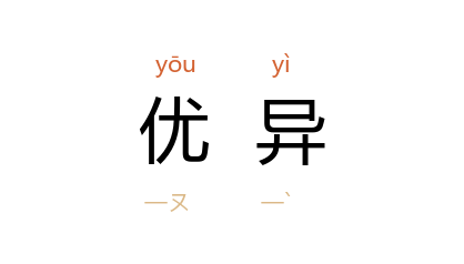 例如:「表现优异」、「成绩优异」。