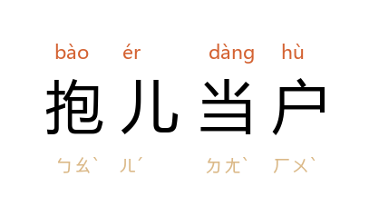 ⒈ 隐语。抱着小儿在门口。谓要求地方官开门恤孤。