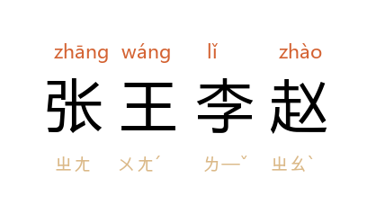 ⒉ 四者皆最常见的姓,连用泛指一般人。