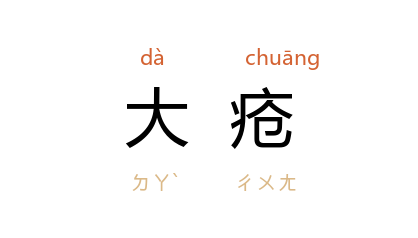 ⒈ 俗称梅毒。软性下疳等性病在身体表面上形成的溃疡。
