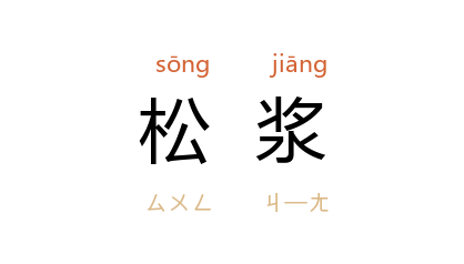 ⒈ 用松脂或松花、松子酿成的酒浆。