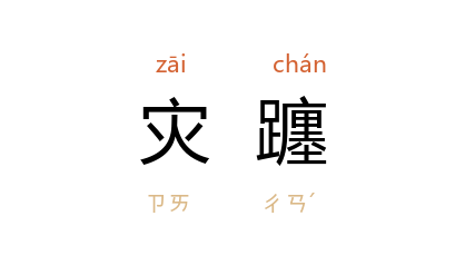 ⒈ 亦作“灾缠”。古人认为日月星辰的运行偏离原来的轨迹是天象的变异,人间必有灾难,故称。引申指灾祸。