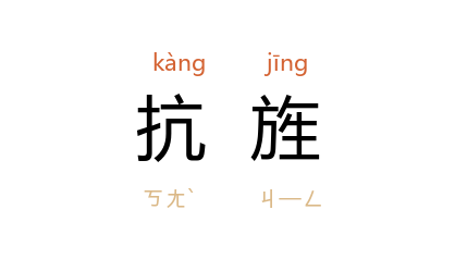 引《汉书·终军传》:“票骑抗旌, 昆邪 右衽。”三国 魏 曹植 《应诏诗》:“前驱举燧,后乘抗旌。”晋 石崇 《王明君词》:“辞诀未及终,前驱已抗旌。”元 杨载 《送张宣抚使岭南》诗:“抗旌辞朝野,击楫渡 湘川。”