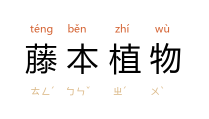 ⒈ 根生于土壤中的一种易弯或柔软的木本或草本的攀缘植物。