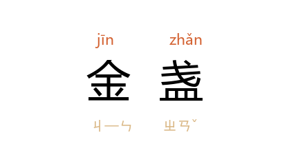 引唐 杜甫 《江畔独步寻花七绝句》之四:“谁人载酒开金盏,唤取佳人舞绣筵。”前蜀 毛文锡 《酒泉子》词:“柳丝无力裊烟空。金盏不辞须满酌,海棠花下思朦朧。醉春风。”宋 孙光宪 《遐方怨》词:“愿早传金琖,同欢卧醉乡。”