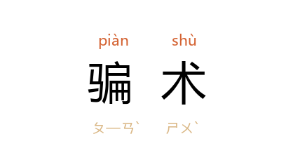 引《二十年目睹之怪现状》第五回:“这等骗术,任是甚么聪明人,都要入彀。”瞿秋白 《乱弹·水陆道场》:“他们这套戏法不但万分无耻,而且是个太巧妙的骗术。”