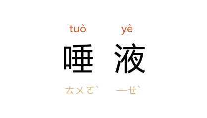 ⒈ 唾液腺分泌的液体和口腔壁上的许多小腺所分泌的粘液,在口腔里混合在一起成为唾液,其作用是使口腔湿润,使食物变软容易咽下,同时还含有淀粉酶,能分解淀粉,有部分的消化作用。通称唾沫或口水。