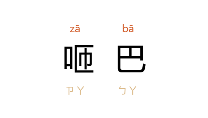 引《花城》1981年第6期:“二妞儿 有生以来只吃过一次(栗子面窝头),还咂巴着小嘴说过:‘真香!真甜!’”《东海》1981年第6期:“宗辛辛 有滋味地咂巴一下嘴。”