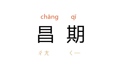 引《乐府诗集·郊庙歌辞七·周郊祀乐章》:“高明祚德,永致昌期。”宋 陆游 《天申节贺表》:“敢即昌期,虔申寿祝。”清 昭槤 《啸亭杂录·朱文正》:“翁方纲 等皆学问渊博,实应昌期而生者。”