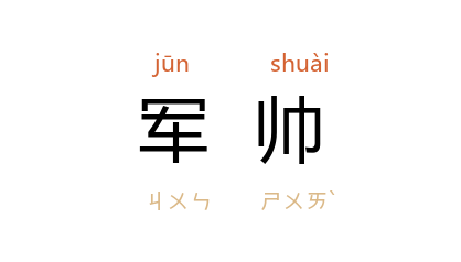 引《左传·宣公十二年》:“命为军帅,而卒以非夫,唯羣子能,我弗为也。”《南史·柳元景传》:“加 元景 建威将军总统军帅。”郭沫若 《李白与杜甫·李白在政治活动中的第二次大失败》:“是 季广琛 首先发难, 永王 的军帅们几乎全部背叛了。”