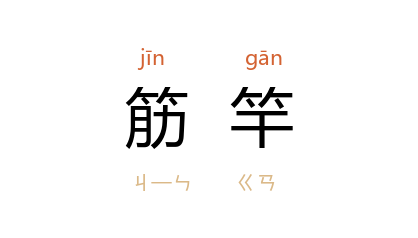 引《文选·鲍照<出自蓟北门行>》:“羽檄起边亭,烽火入 咸阳。徵骑屯 广武,分兵救朔方。严秋筋竿劲,虏阵精且强。”李善 注:“《周礼》曰:‘弓人为弓。筋也者,所以为深也。’竿,箭干也。并公旱切。”刘良 注:“筋为弓,竿谓箭也。”《南齐书·王融传》:“设稾秣有储,筋竿足用,必以草窃关燧,寇扰边疆。”
