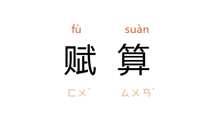 引《汉书·贡禹传》:“禹 以为古民亡赋算口钱,起 武帝 征伐四夷,重赋於民,民产子三岁则出口钱,故民重困。”北齐 颜之推 《颜氏家训·归心》:“遂使非法之寺,妨民稼穑;无业之僧,空国赋算;非大觉之本旨也。”王利器 集解:“卢文弨 曰:‘《汉书·高帝纪》:四年八月,初为算赋。’ 如淳 曰:‘《汉仪注》:民年十五以上,至五十六,出赋钱,人百二十为一算,为治库兵车马。’”