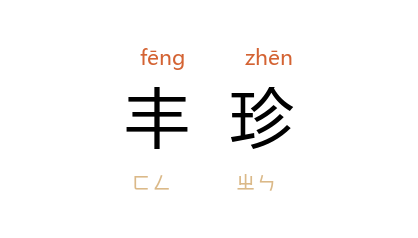 引《汉武帝内传》:“王母 自设天厨,真妙非常,丰珍上果,芳华百味。”唐 吕温 《刘公神道碑铭》:“妻子食淡而宾膳丰珍,居室安卑而候馆华峻。”宋 强至 《代上宋内翰欧阳龙图状》:“外厨五鼎,靡独享於丰珍。”