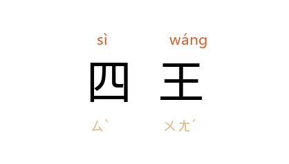 ⒉ 清初山水画家王时敏、王鉴、王原祁、王翚的合称。他们在艺术思想和风格上,直接或间接受董其昌影响。技法方面功力较深,但崇尚古人,意境很少创新,不少作品趋于程式化,对清代山水画有深远影响。康熙至乾隆间有王昱、王愫、王玖、王宸;其后又有王三锡、王廷元、王廷周、王鸣韶,俱画山水,宗法“四王”。前者称为“小四王”,后者称为“后四王”。