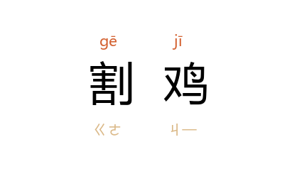 ⒊ 子游 为 武城 宰,提倡礼乐, 孔子 笑曰“割鸡焉用牛刀”。后因以“割鸡”指县令之职。参见“割鸡焉用牛刀”。