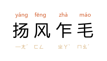 引梁斌 《播火记》三六:“你带着一队人,到村北去,装得扬风乍毛,声势浩大,一路子攻打。”亦作“扬风扎毛”。 郭澄清 《大刀记》第五章:“锁柱 眼望着汉奸们这种草鸡样的丑态,回想着他们往日那种扬风扎毛不可一世的凶相,觉着真开心呀!”