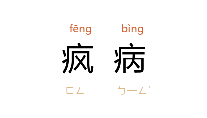引《二十年目睹之怪现状》第九一回:“你今天怕是犯了疯病了!怎么拿婊子比起我哥哥来!”老舍 《神拳》第三幕第三场:“大师兄,不要信她的话!她有疯病!”