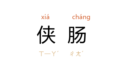 引《醒世恒言·卢太学诗酒傲王侯》:“天生就一副侠肠傲骨,视功名如敝屣,等富贵犹浮云。”清 恽敬 《与廖听桥书》:“大姪有侠肠,有豪气,有胜情,有远志。”《儿女英雄传》第八回:“如今幸而不死,又把姑娘你一片侠肠埋没得曖昧不明,我 安龙媒 真真的愧悔无地!”